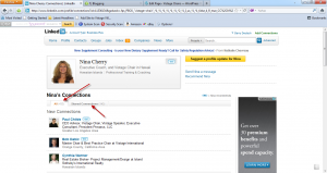 The first step is to go to each of your member's profiles and click on their connections. In the screen shot below you'll see the connections link on Nina Cherry's Profile.